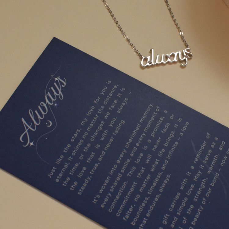 The Always Necklace comes with a heartfelt meaning card that reads: