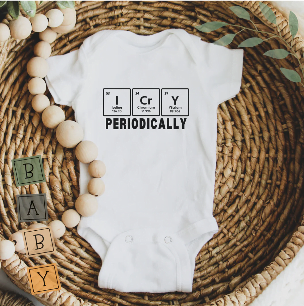 Get ready to turn heads with this adorable and scientifically savvy onesie! Featuring a cute design and a pun on the periodic table, your little one will be sure to make a statement. Perfect for adding a touch of humor to your baby’s wardrobe. (What a smart and stylish way to dress up your baby!)