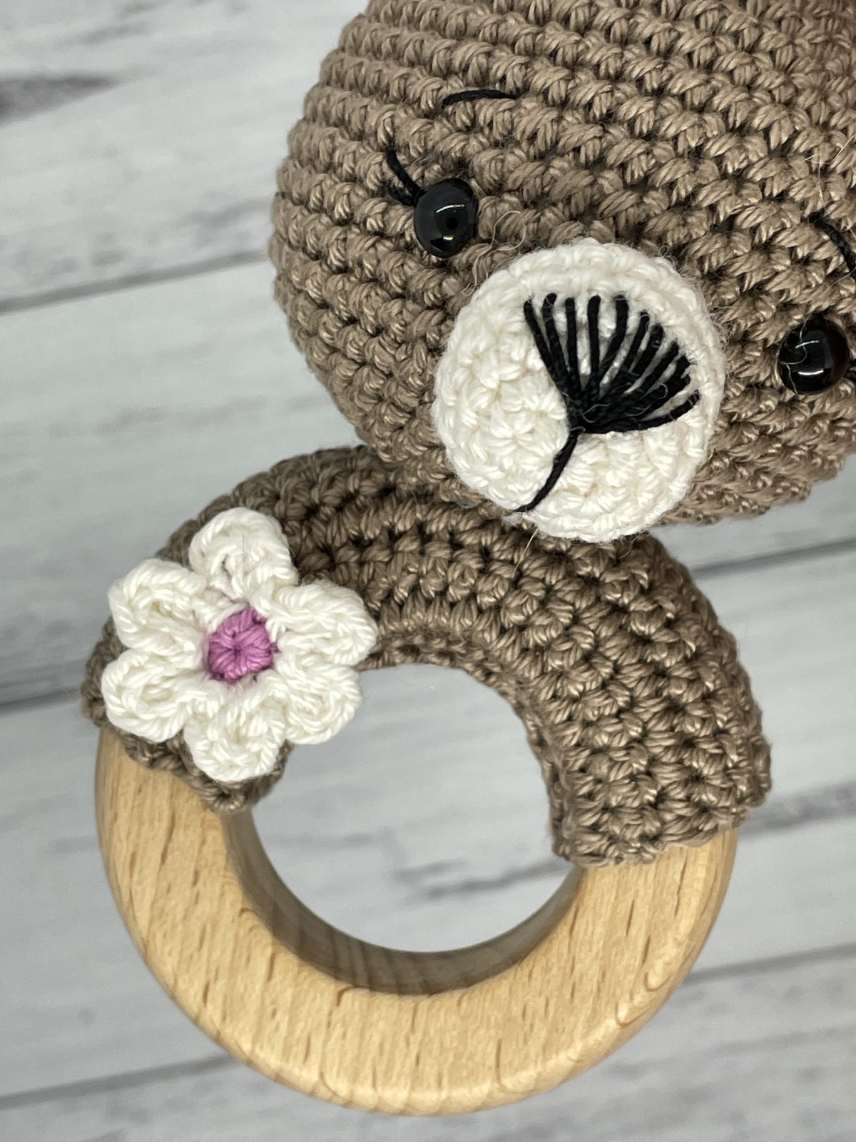 Organic Baby Rattle/Teething Ring which made from 100% cotton and an