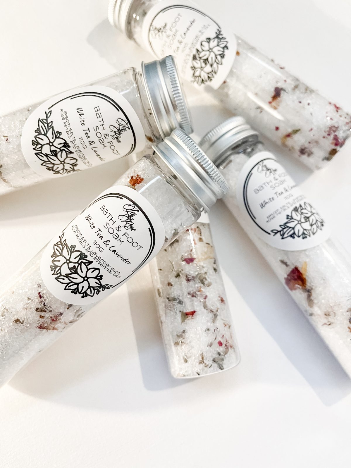 Ingredients: Epsom Salt, Essential Oils, Sodium Bicarbonate, Petals.