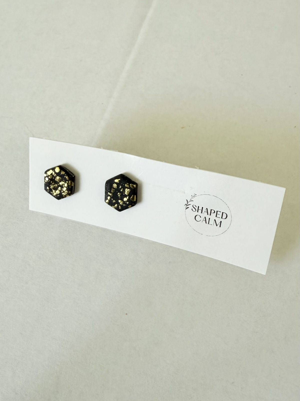Black and gold hexagon stud earringAvailability: 1 in stock