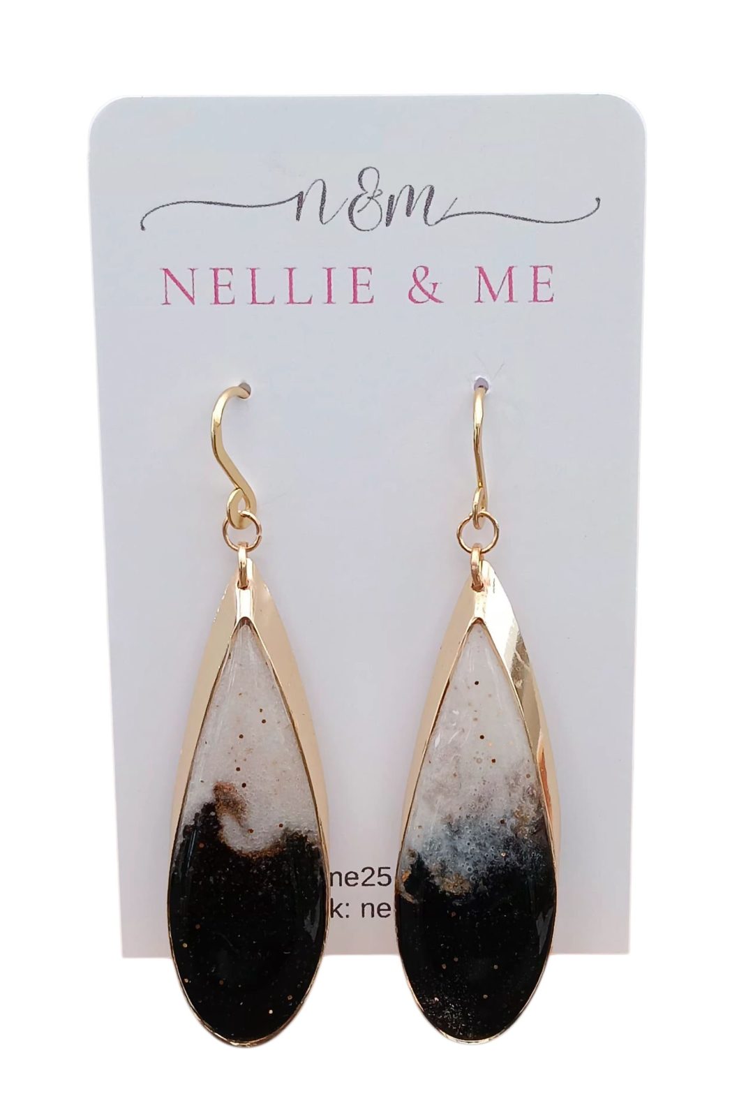 BLACK, WHITE AND GOLD TEARDROP EARRINGS