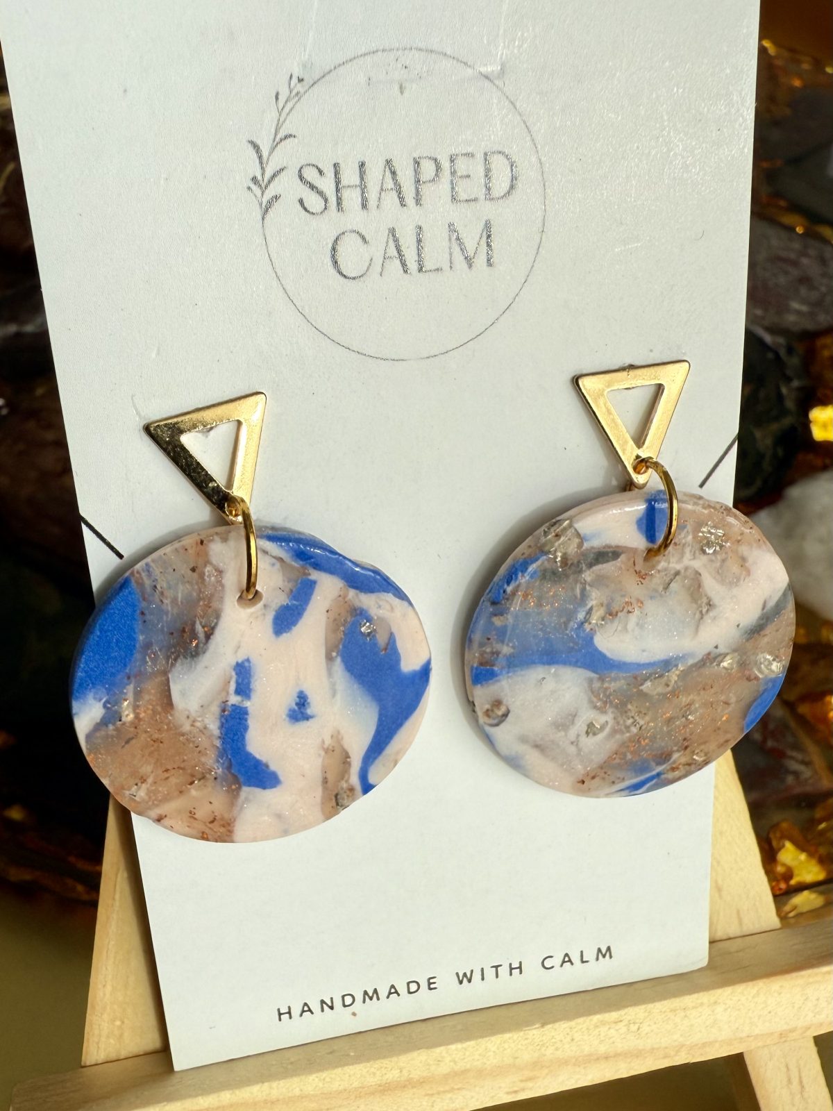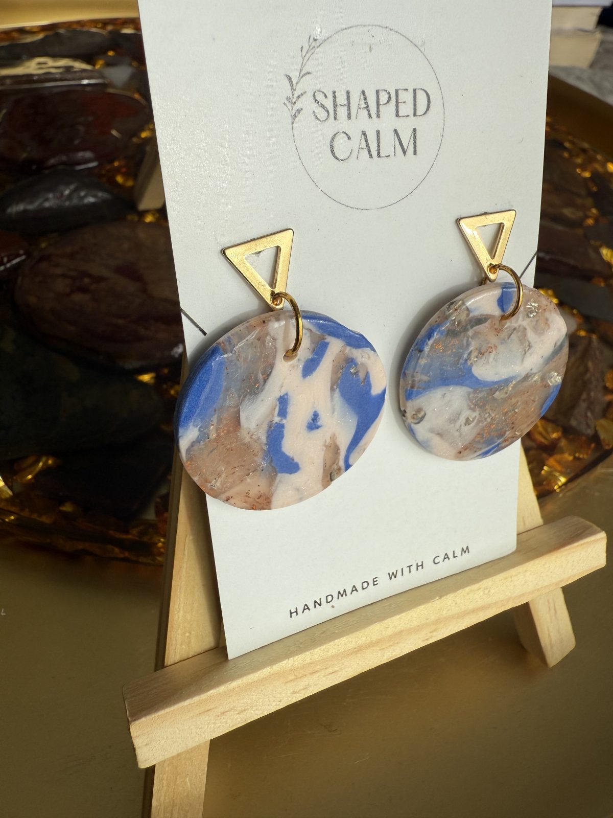 Blue beach marble look dangle earringsAvailability: 1 in stock