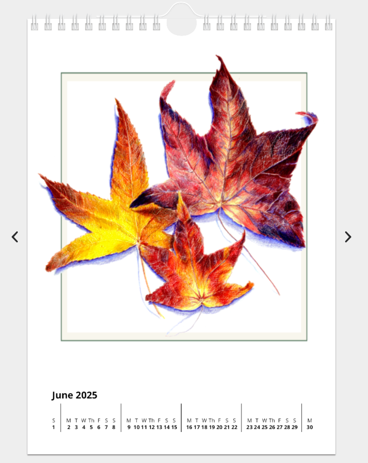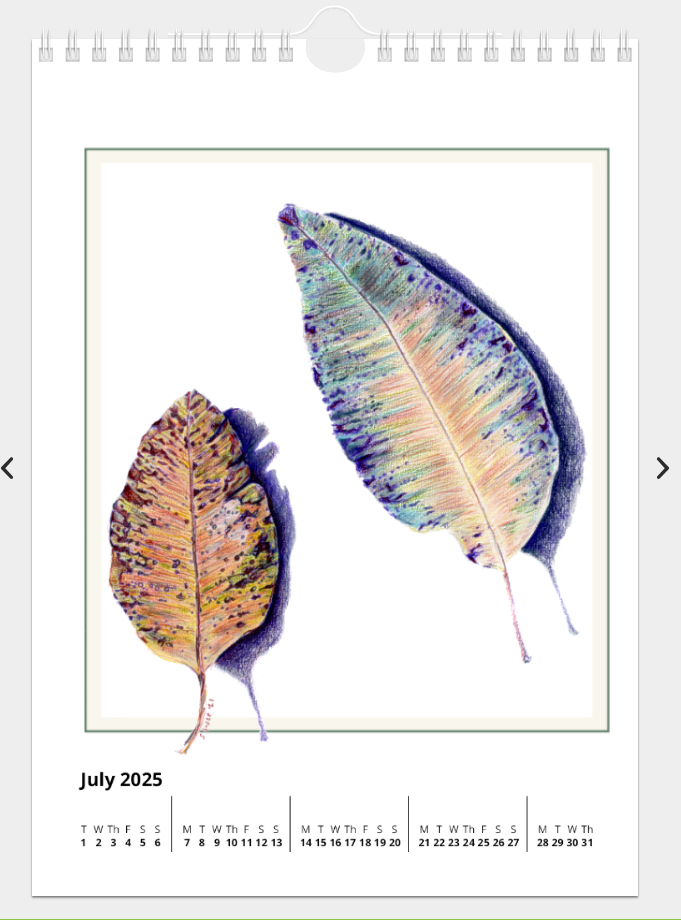 Calender 2025 featuring Sandra’s Leaf Art