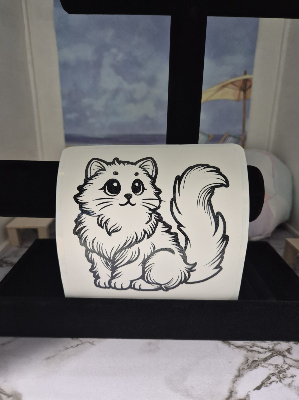 Vinyl Car Sticker featuring cute little cat on a 12cm x 12cm solid white background.
