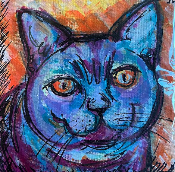 8×8 cat pet portrait painted