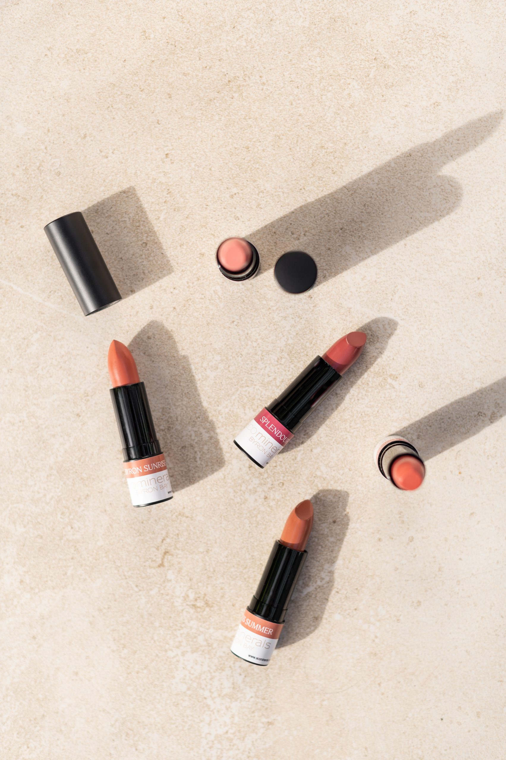 Byron Sunrise – a peachy, medium to dark-toned, shimmering and fresh terracotta nude. Perfect for pale to medium complexions. Pairing combo: Eco Minerals Blush, Uluru.