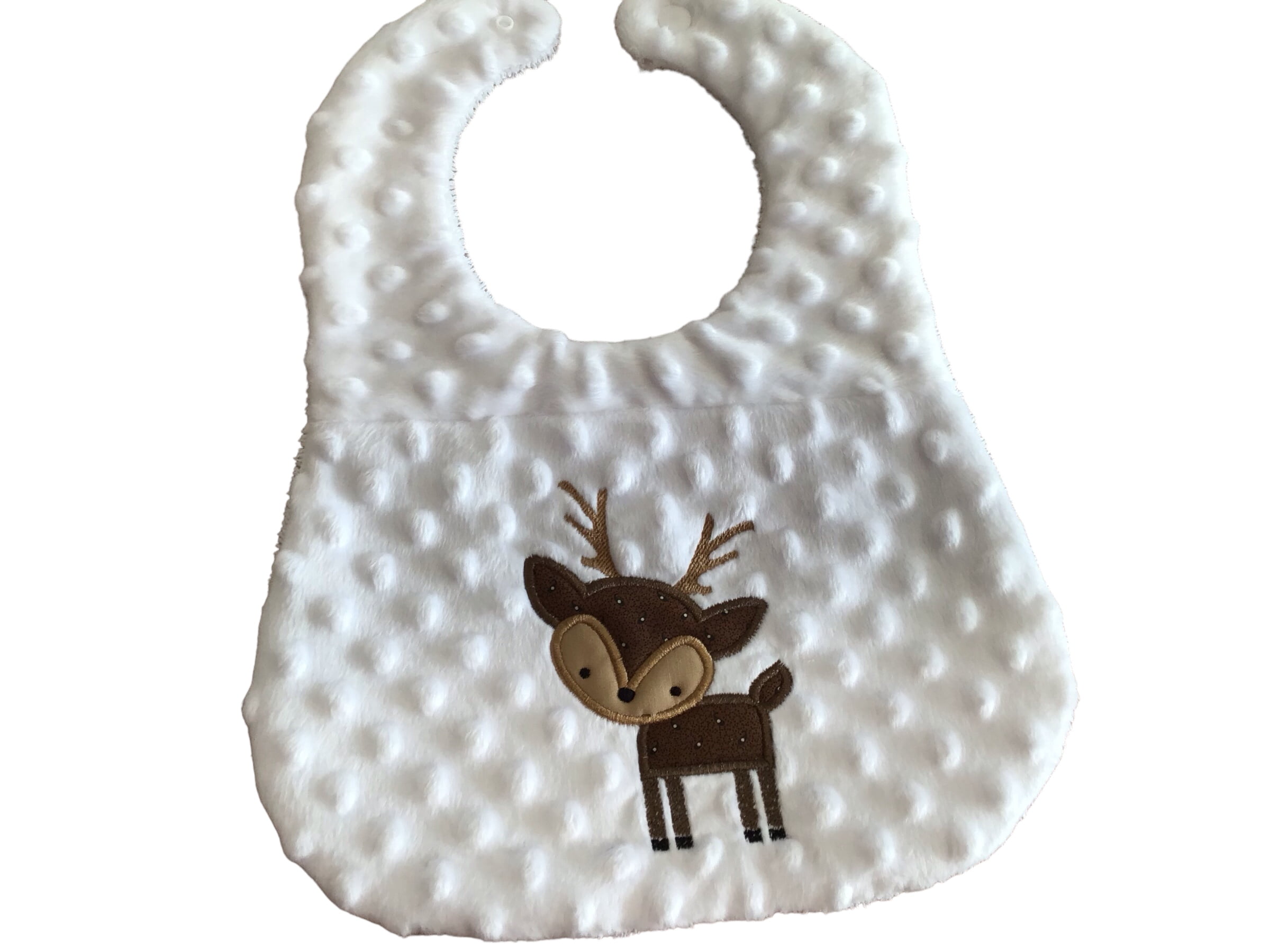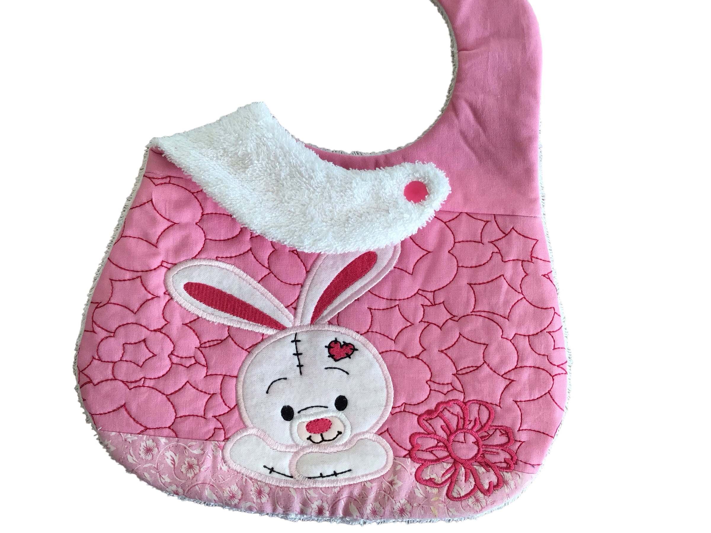 Thick baby bibs with towelling backing. Inner fleece and cotton front of bib. There are many styles to pick from.