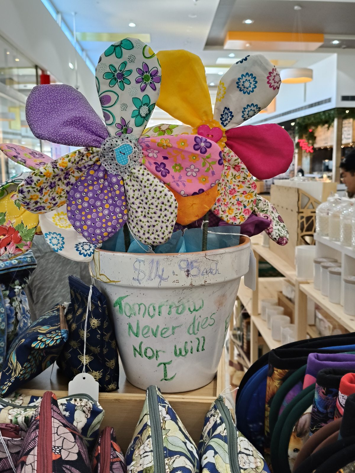 Handmade vibrant flowers made with cotton and bamboo batting. Hand sewn petals, with a gorgeous button in the centre and bamboo stick with green string wrapped around for the stem. Beautiful ever lasting gift for that special someone.