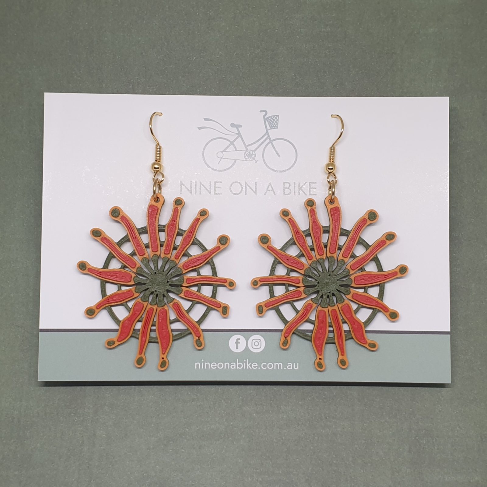Bold and full of movement, these earrings are inspired by the striking Firewheel flower. With radiating arms and intricate detail, they mirror the flower’s striking beauty, bringing a touch of wild elegance to any outfit.