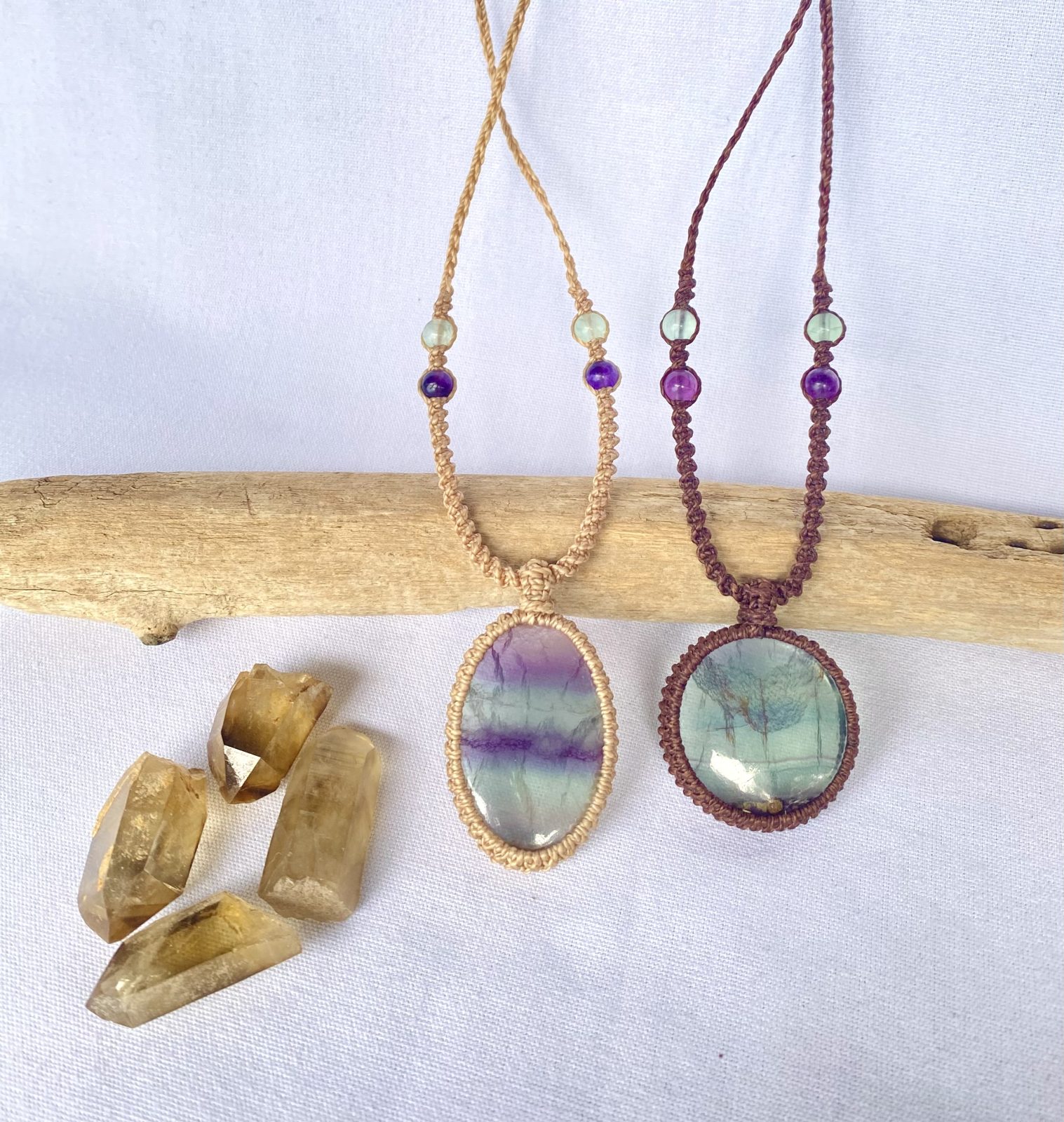 Fluorite Handmade Macrame Crystal NecklacesFluorite Handmade Macrame Crystal Necklaces