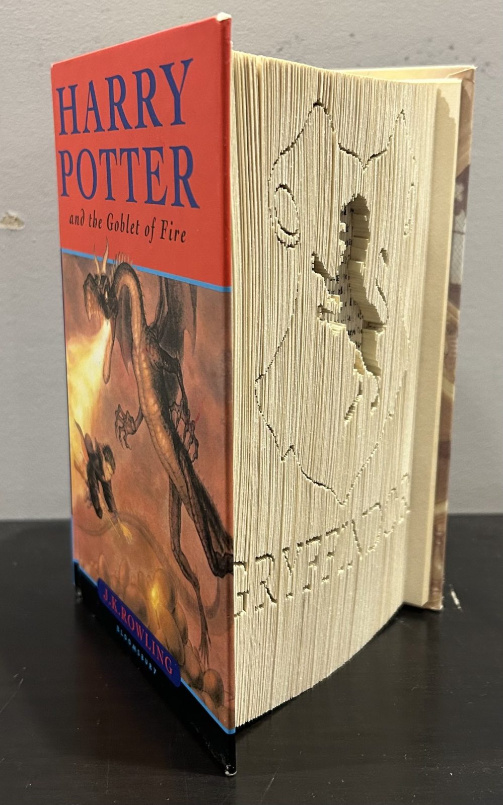 This upcycled Harry Potter book has been lovingly and meticulously folded into the symbol of Gryffindor.