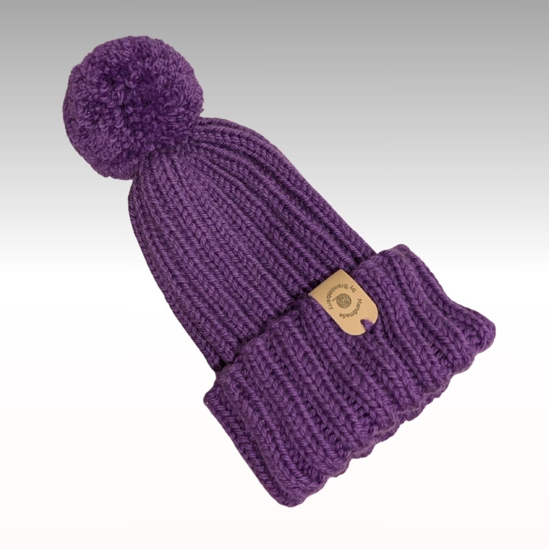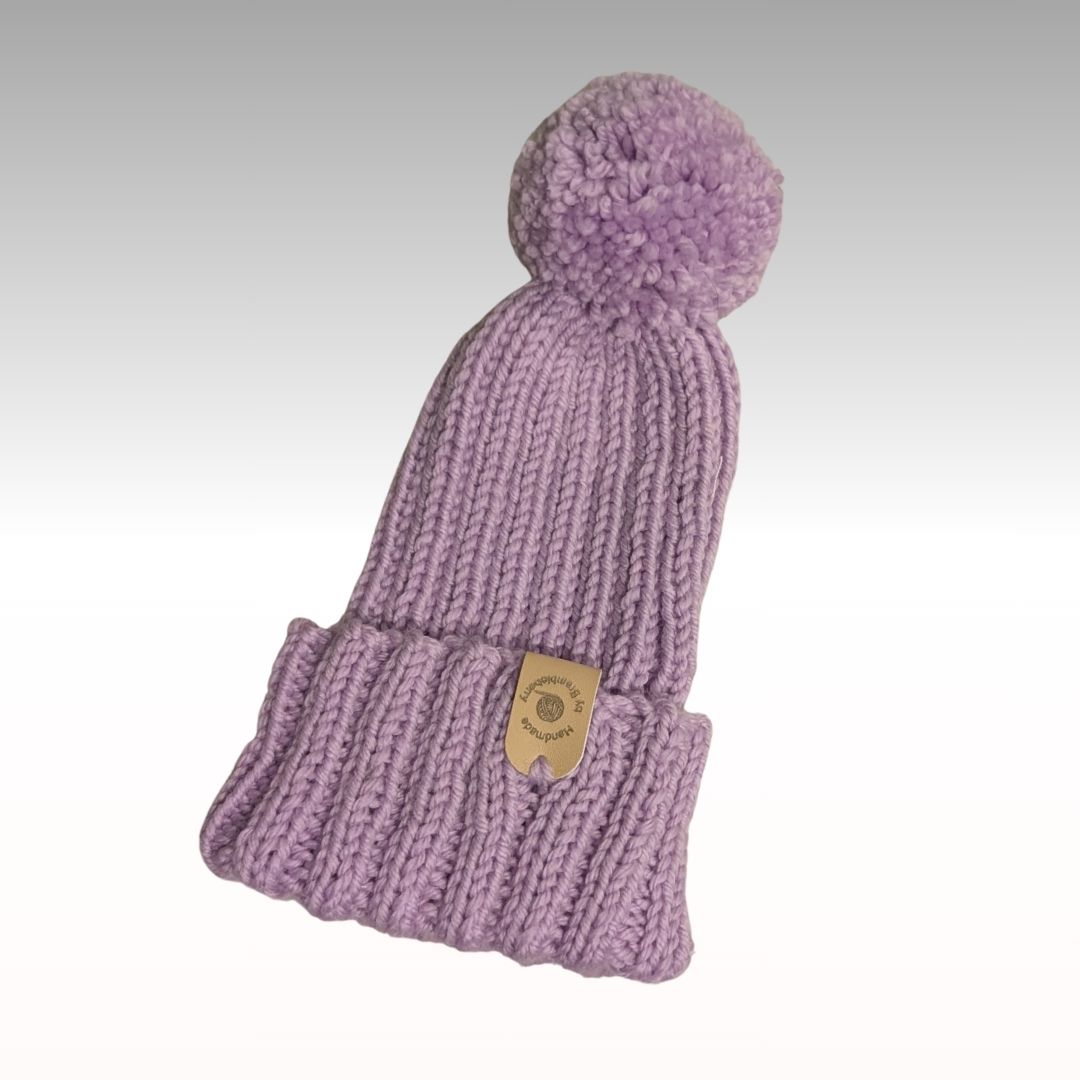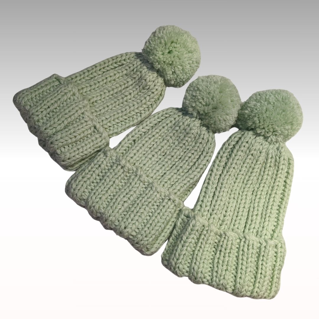 Keep your little ones warm during the colder months in one of these hand knitted beanies featuring pom pom trim.