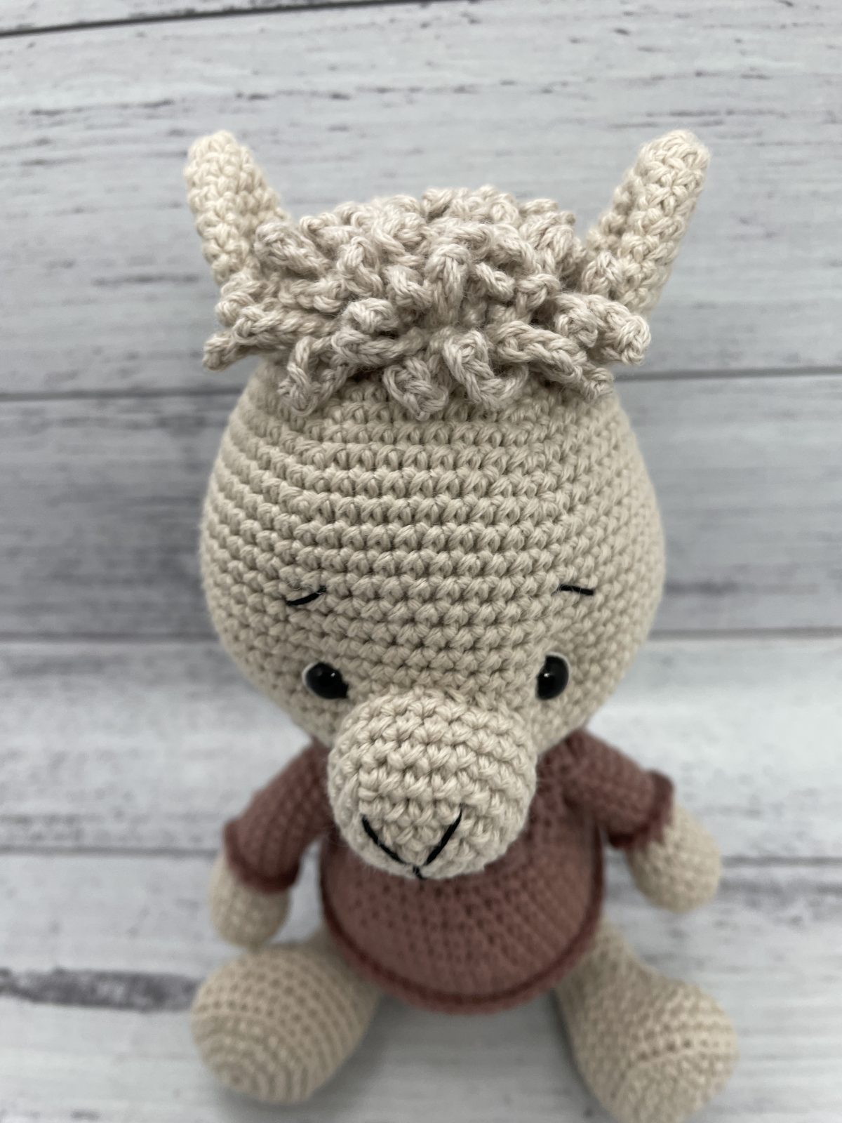 Meet Lacy the Llama, a very cute little character full of spunk and ready to be loved. Lacy is made from a Lul Loves the Moon pattern using Kreadeluxe organic cotton yarn. A prefect baby shower, baby or llama lovers gift.
