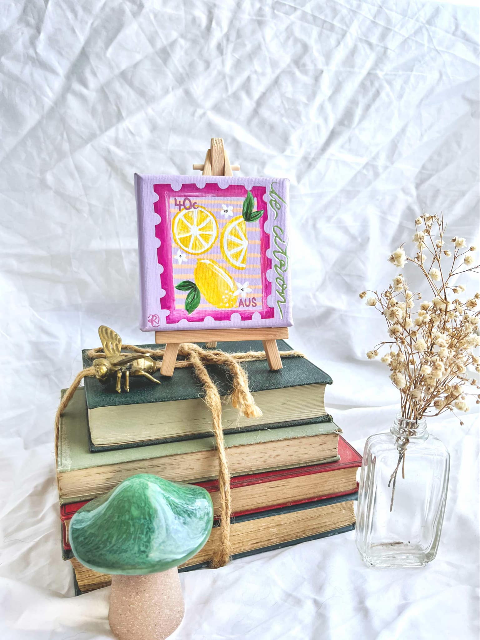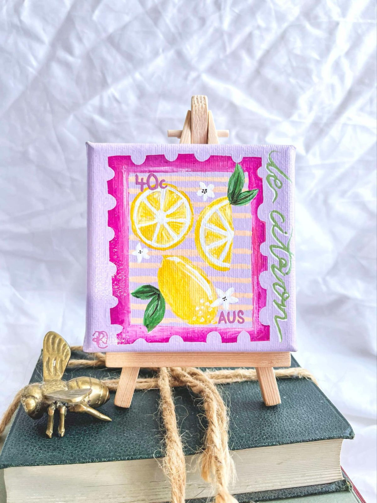 Lemon Le Citron Postage Stamp Mini Artwork 10 x 10cm