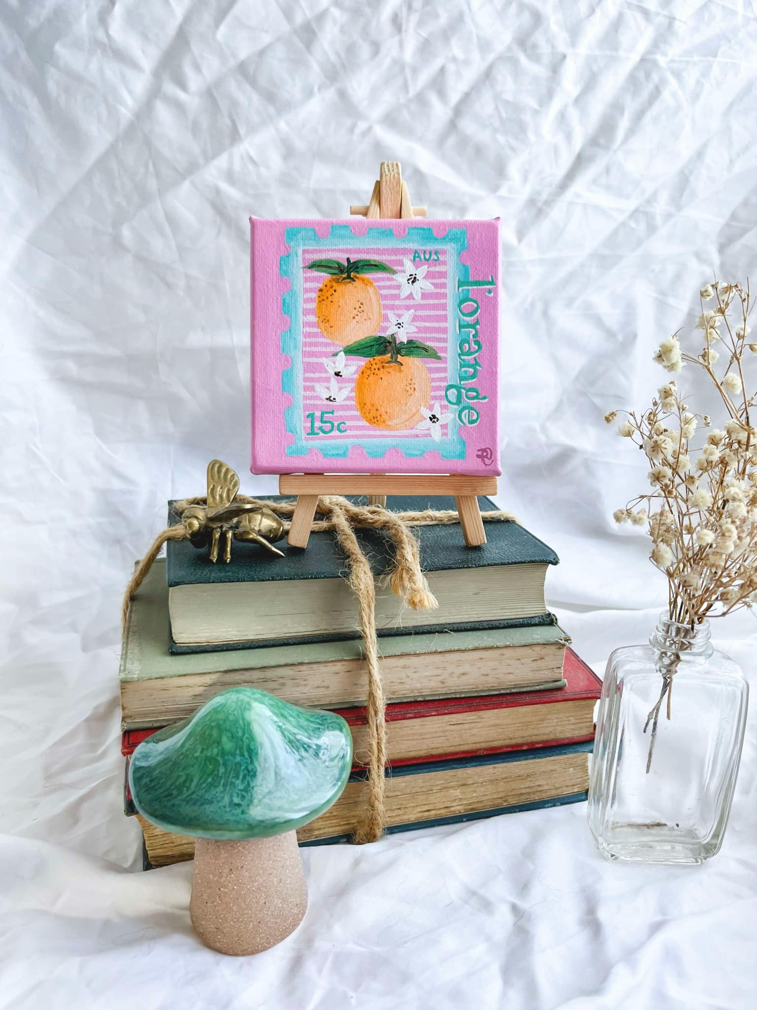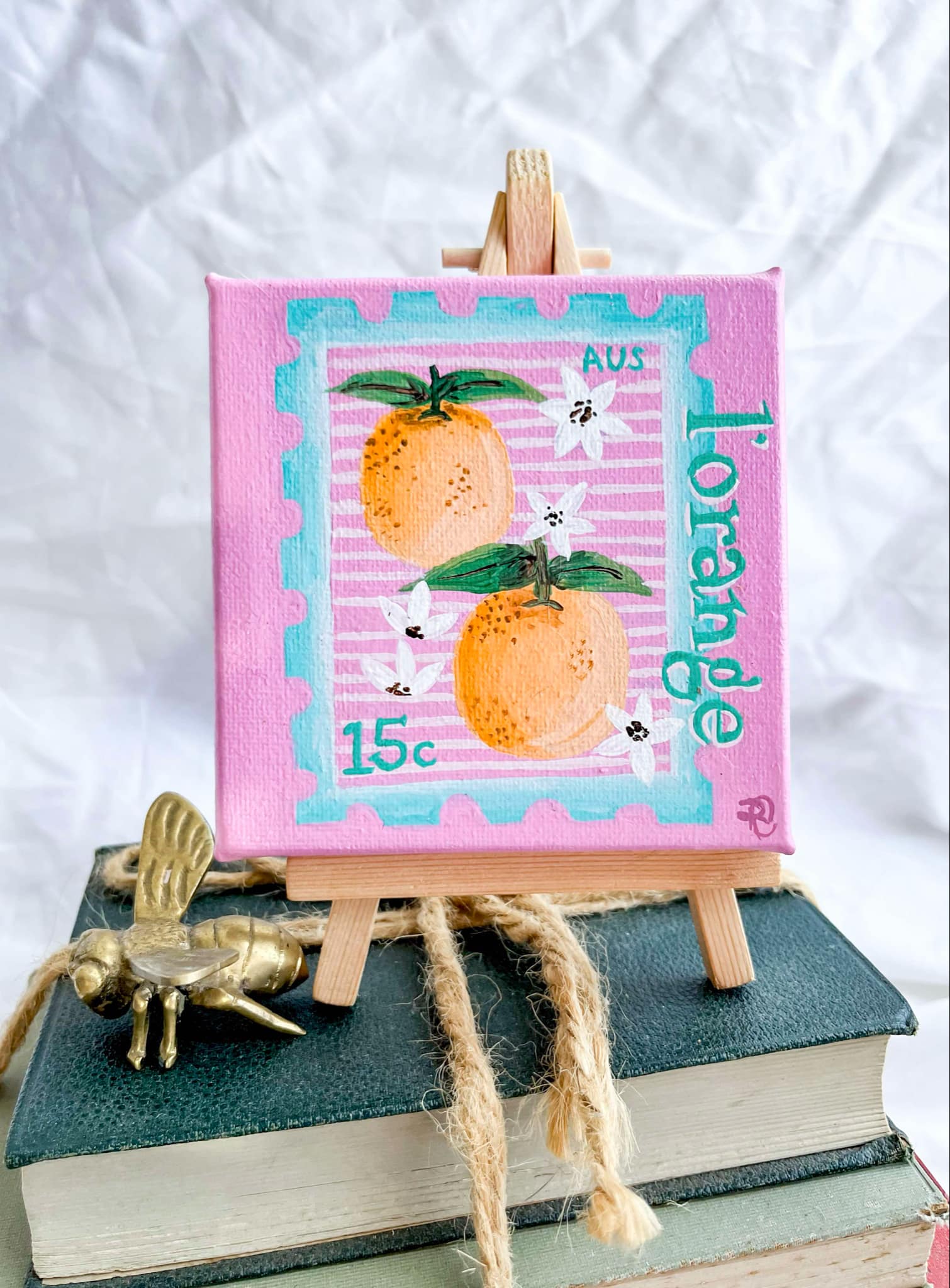 L’Orange Fruit Postage Stamp Mini Artwork 10 x 10cm