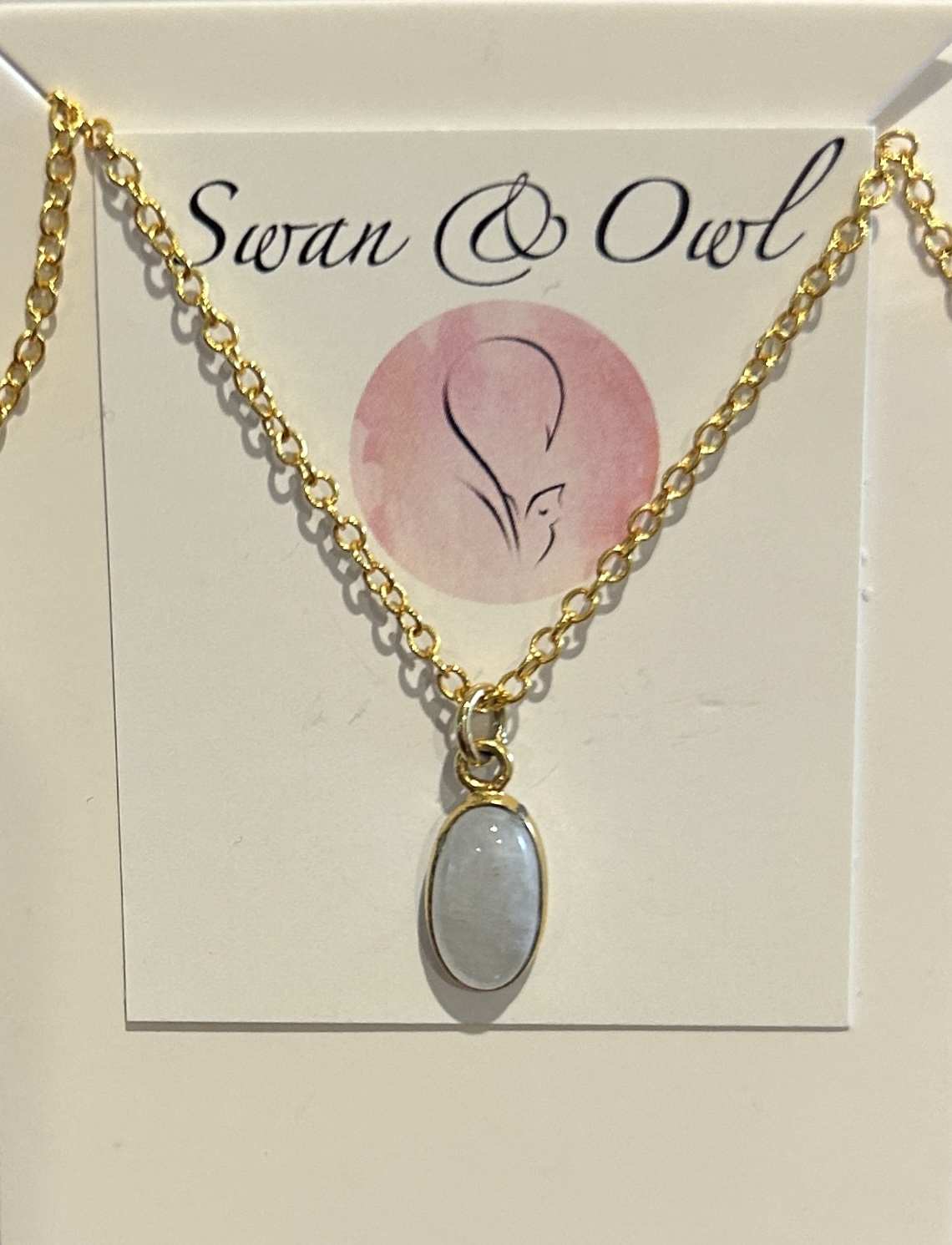 The Moonstone is considered to be a feminine stone, a lucky charm linked to the tides, the earth and the emotions of women. Featuring a small and delicate moonstone surrounded by gold and suspended on a delicate gold chain.
