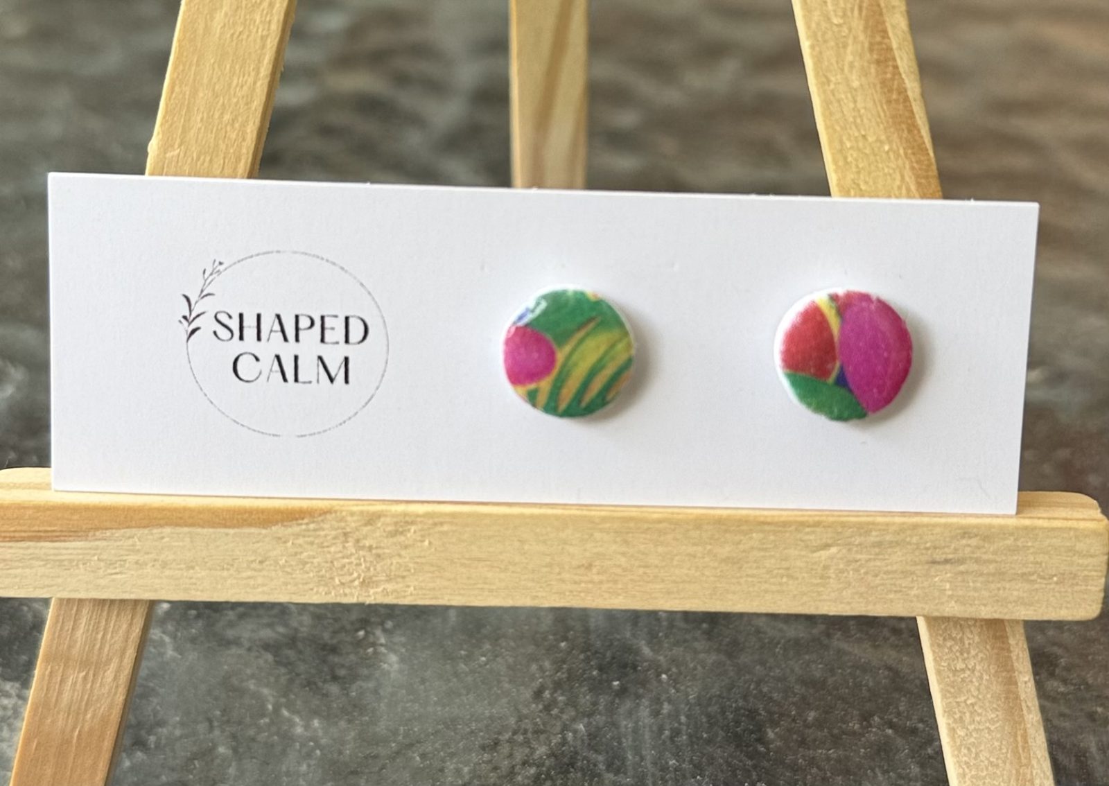 Be the first to review “Pink and green print stud earrings”