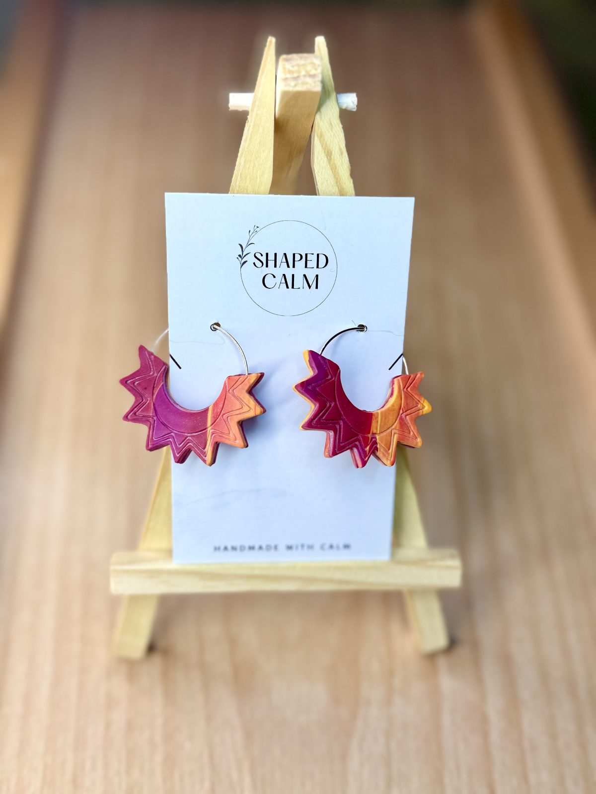 This fun pair of earrings are a great way to show off your love for colour. Lightweight and fun unique hoop design. Handmade with calm, love, and a touch of whimsy!