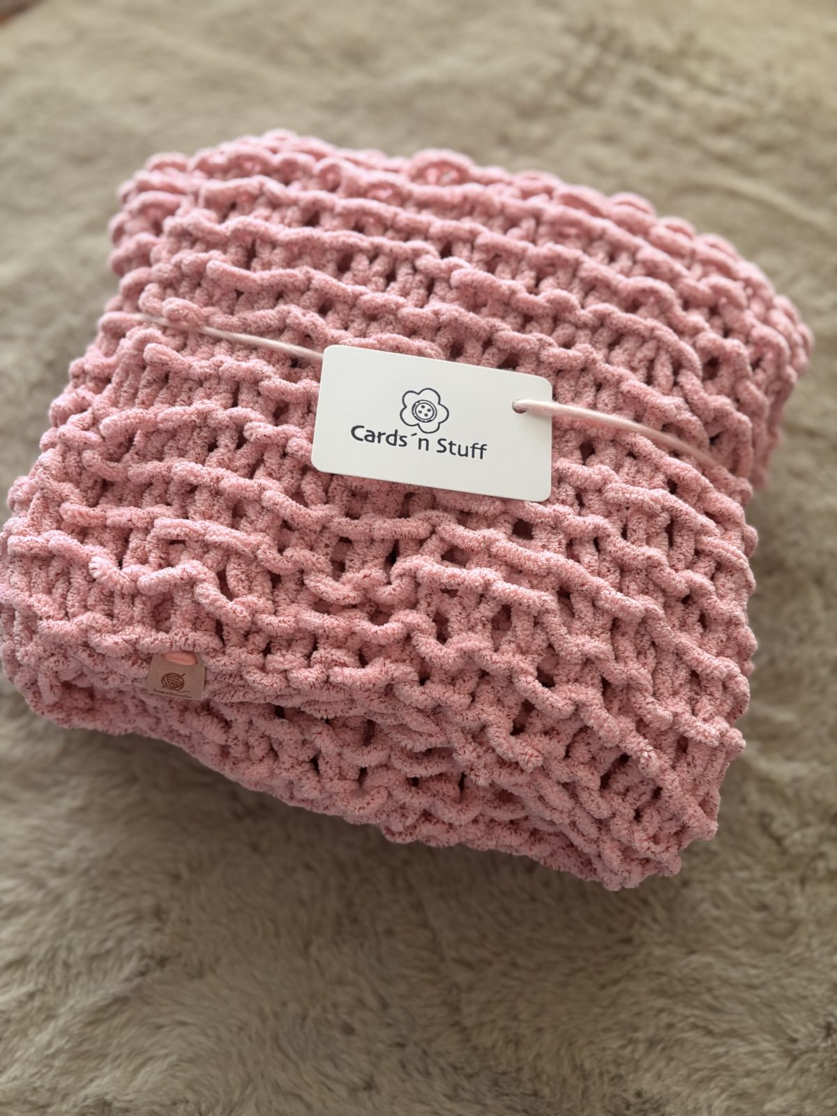 Soft pink blanket. Can be used as a baby blanket or a reading blanket.