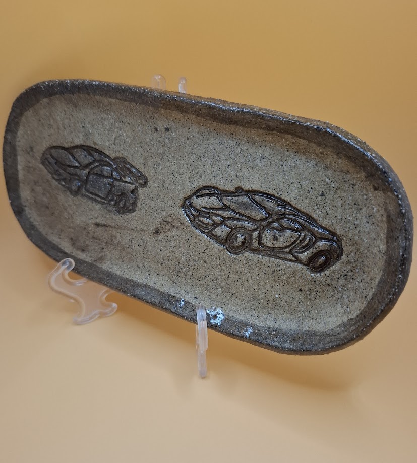 Add a touch of nature to your dining table with our handcrafted Plate Racing Cars. Each piece is unique and one-of-a-kind, made with rustic stoneware pottery. Measuring (approx.) 21x10cm in diameter, this plate is perfect for serving salads, appetizers, or desserts. Or a Plate for Keys, Coins .This design and earthy tones will complement any rustic or farmhouse-style decor.