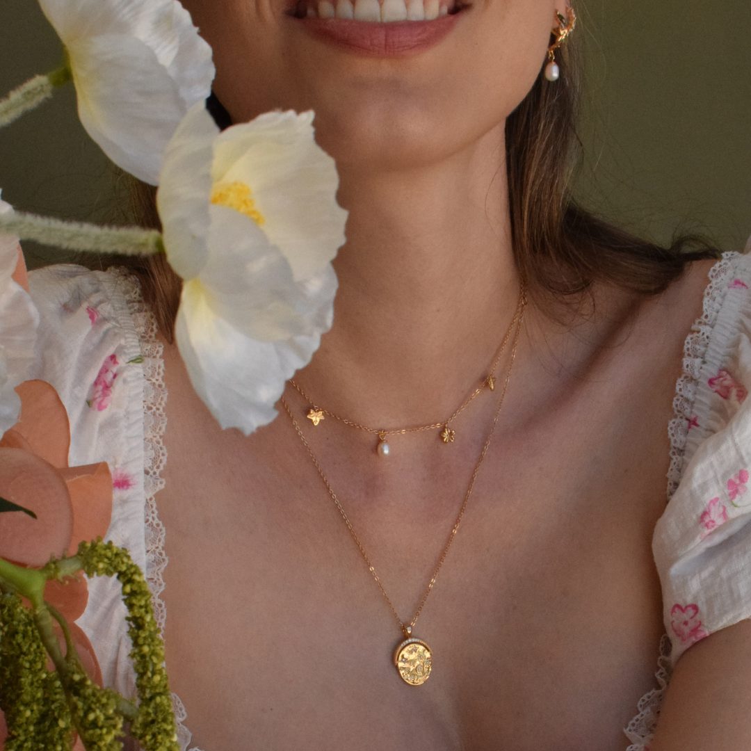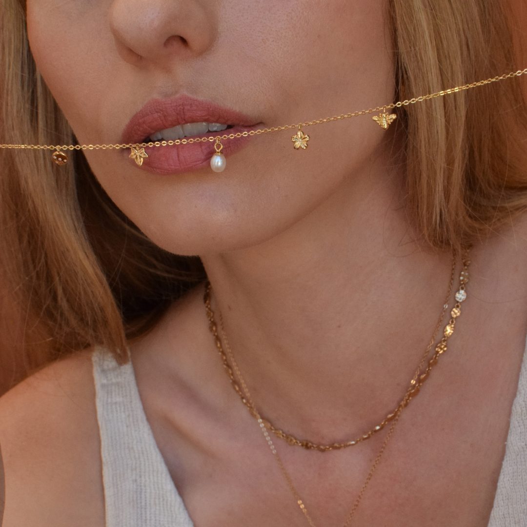 Embrace the beauty of life’s transitions with our Seasons Charm Necklace, a meaningful piece inspired by the ever-changing chapters of life. This charm Necklace features spring’s bumble bee, summer’s blooming flowers, and autumn’s falling maple leaves to winter’s drifting snowflakes along with a fresh water pearl to symbolise wisdom and transformation