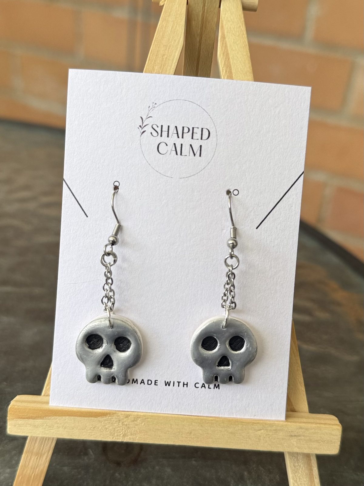 Silver skull on chain dangle earringsAvailability: 1 in stock