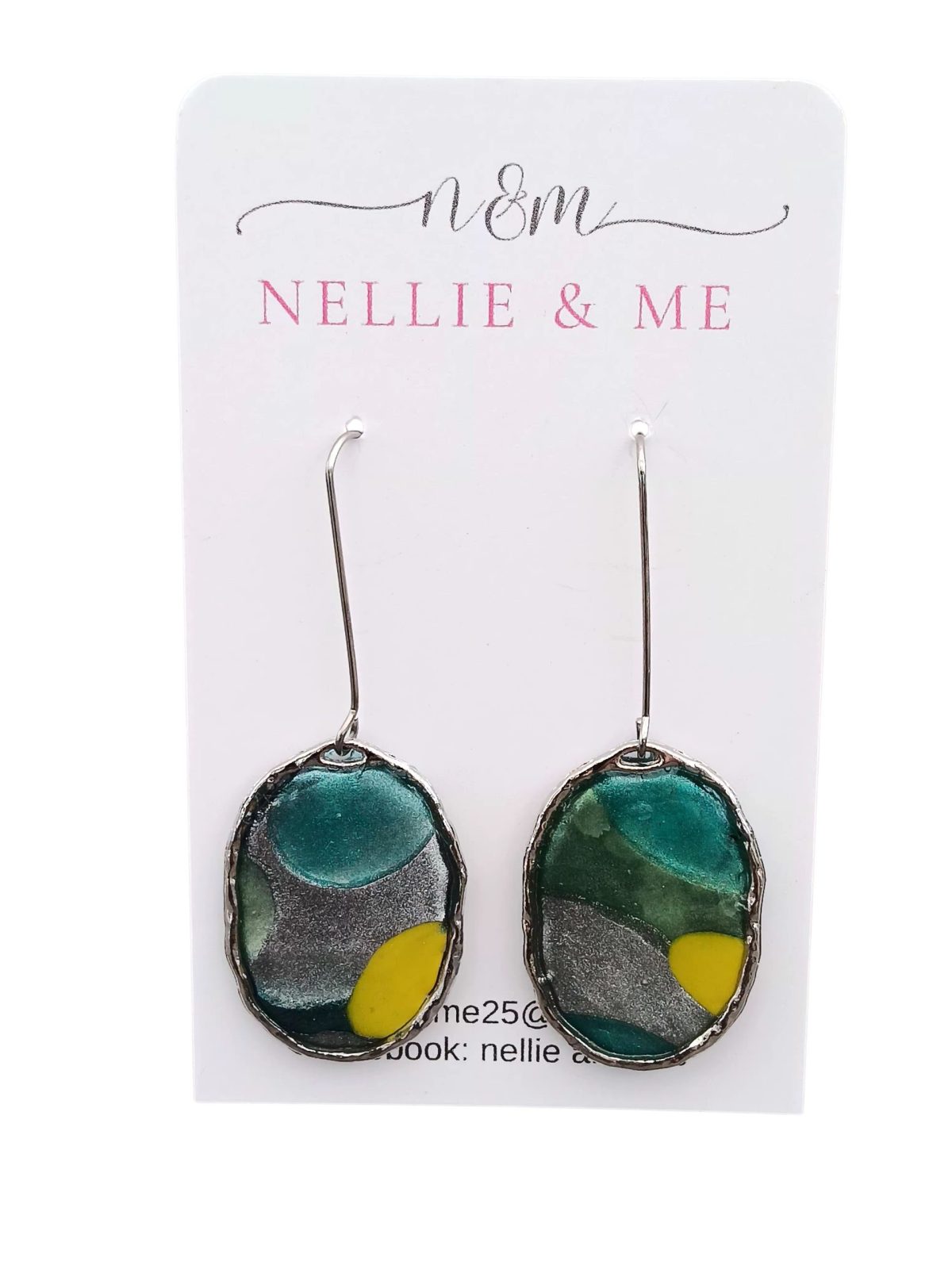 Sunshine yellow dances with ocean tealĀ and metallic silver in a silver frame in