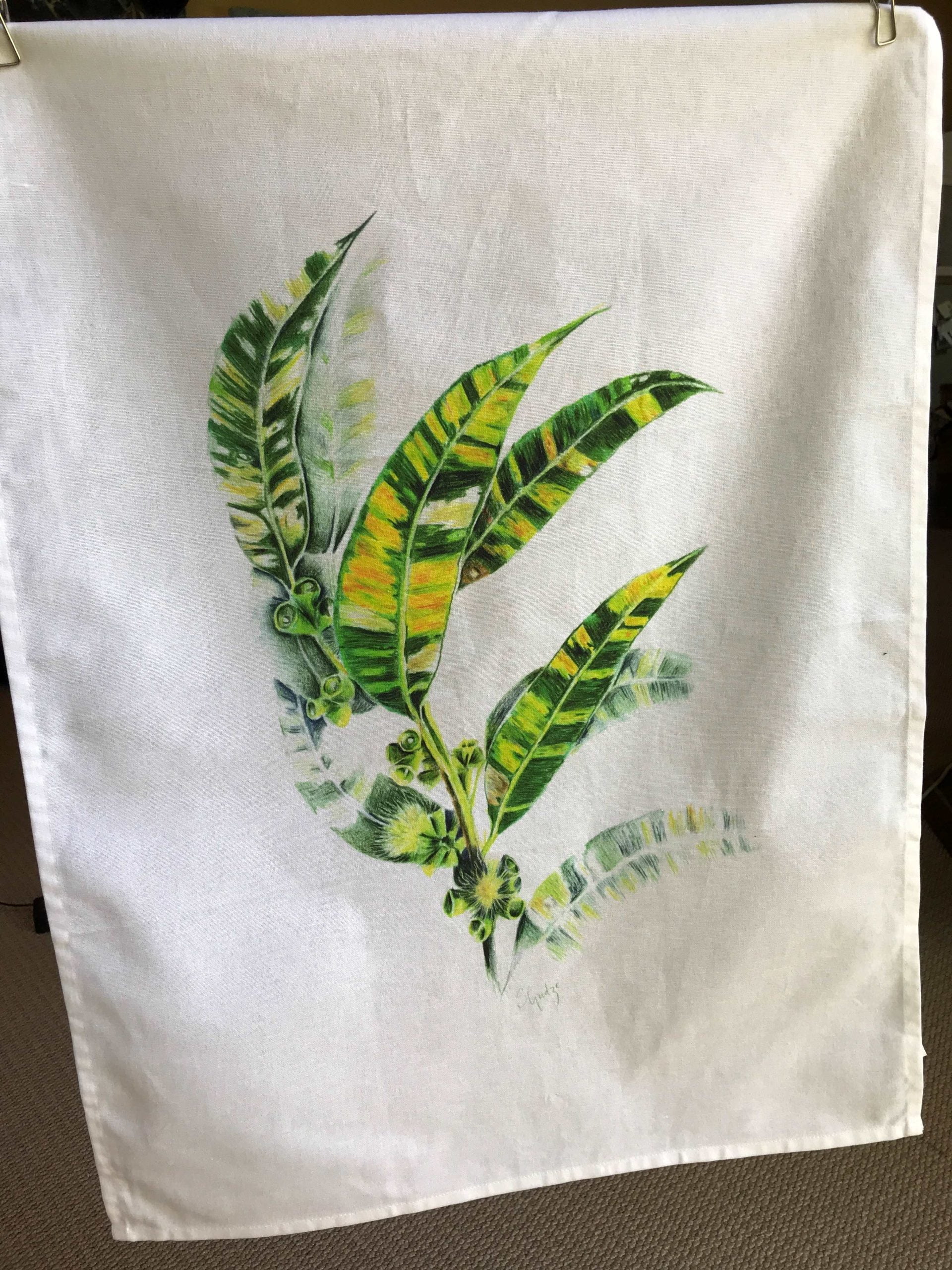 Custom made Cotton tea towels featuring Sandra Gudze’s art designs