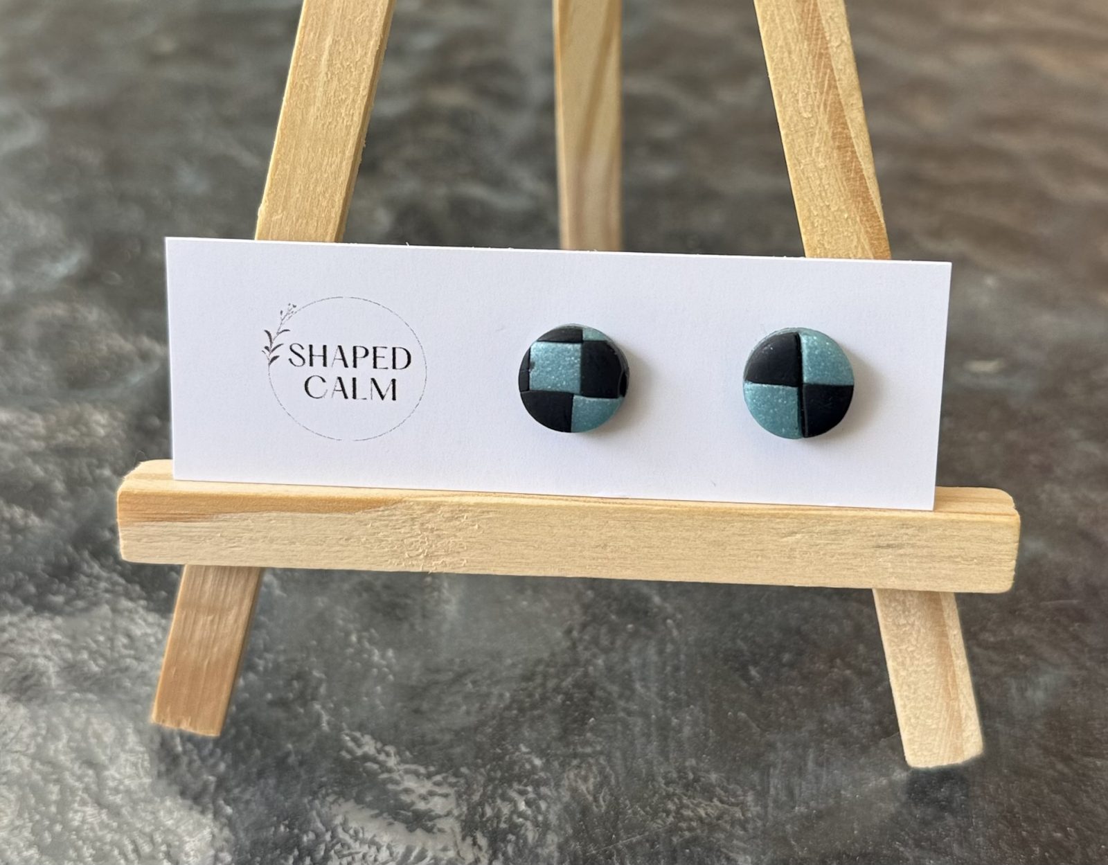 Teal and black checker round stud earringsAvailability: 1 in stock