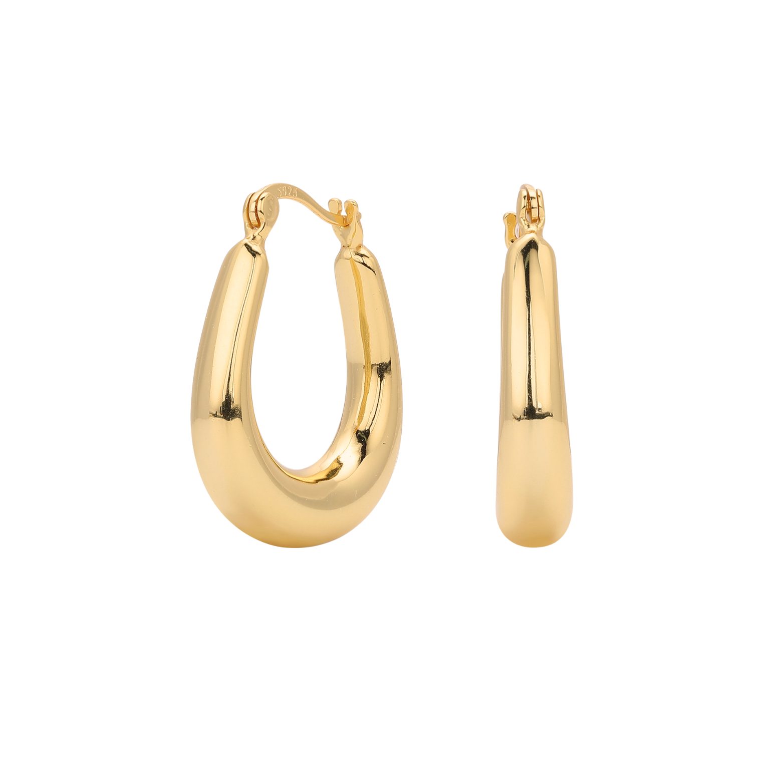 Crafted from 925 Sterling Silver and plated in luxurious 14K yellow gold, these hoops offer a classic design that complements any style effortlessly. Their hypoallergenic and nickel-free composition ensures comfortable wear, even for sensitive skin.