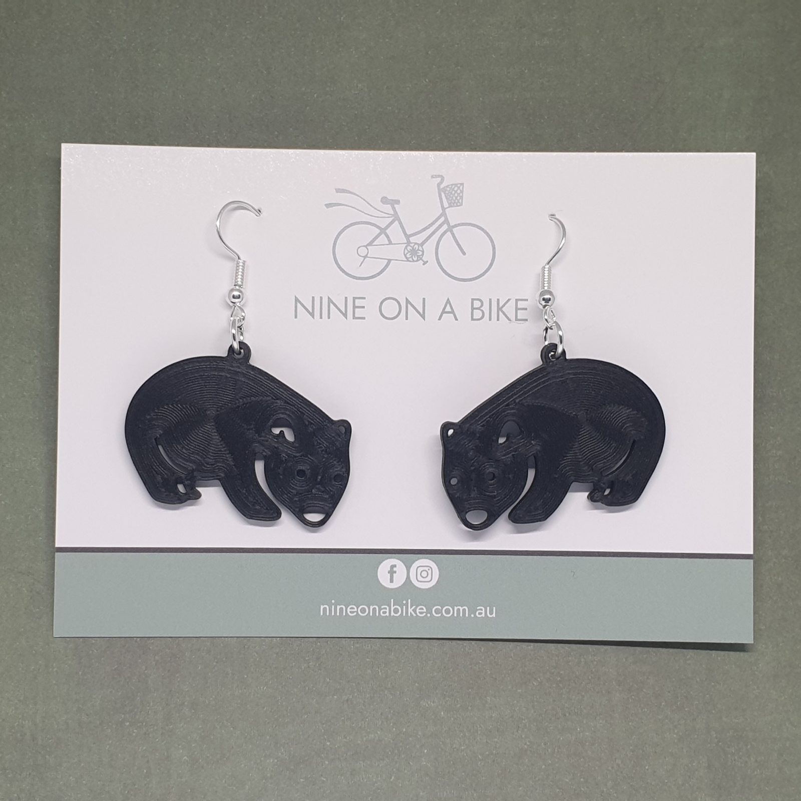Wombat earrings (Black/Silver)