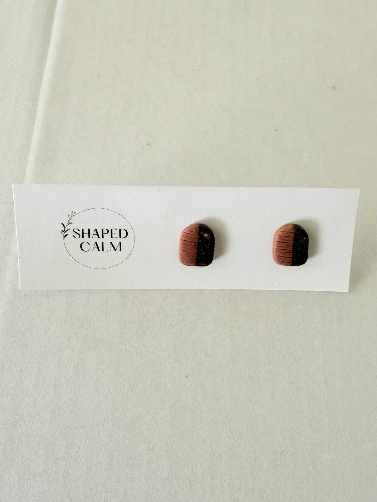 Wood texture half dark and light stud earringsAvailability: 1 in stock