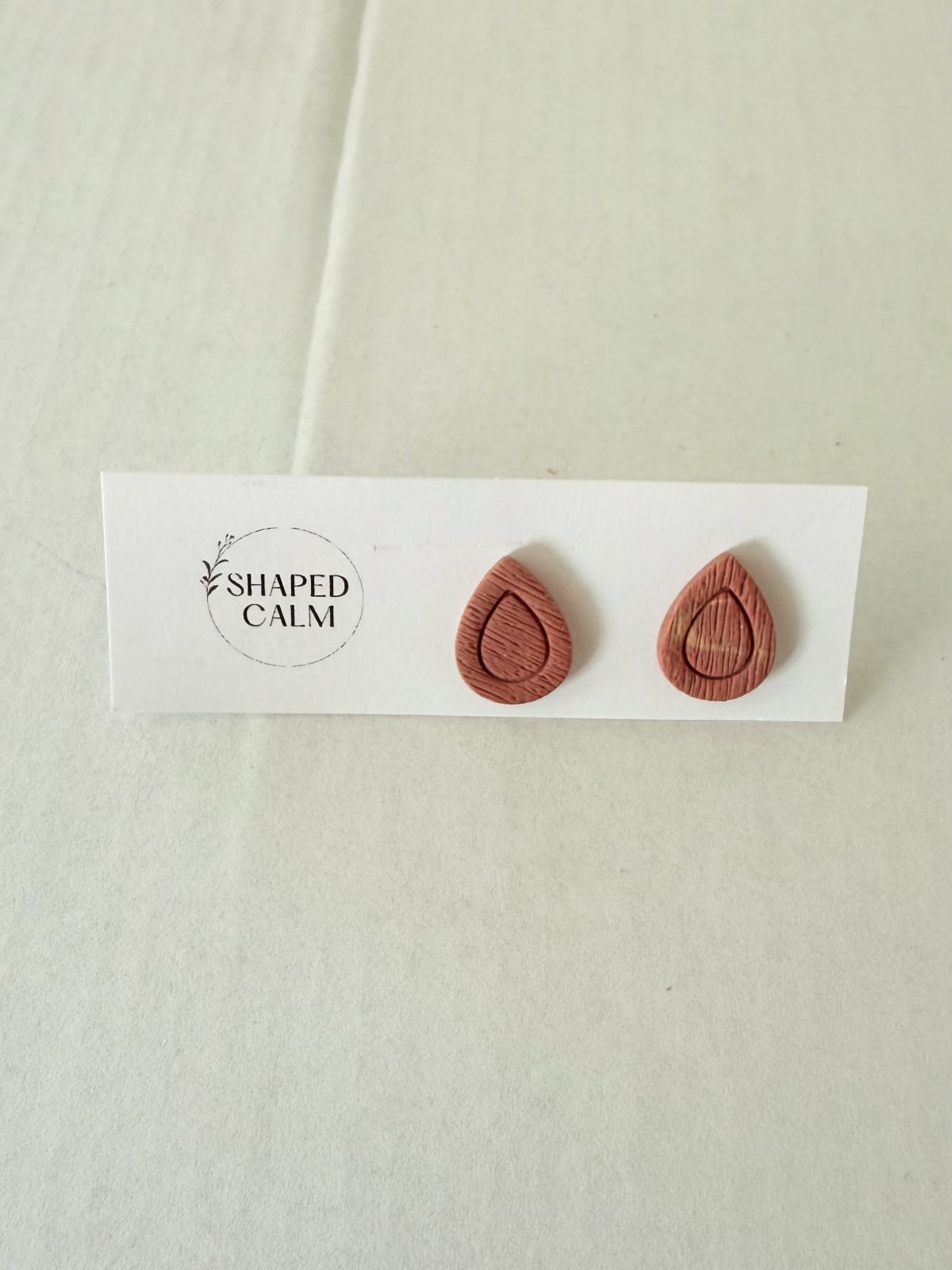 Wood texture teardrop stud earringsWood texture teardrop stud earrings